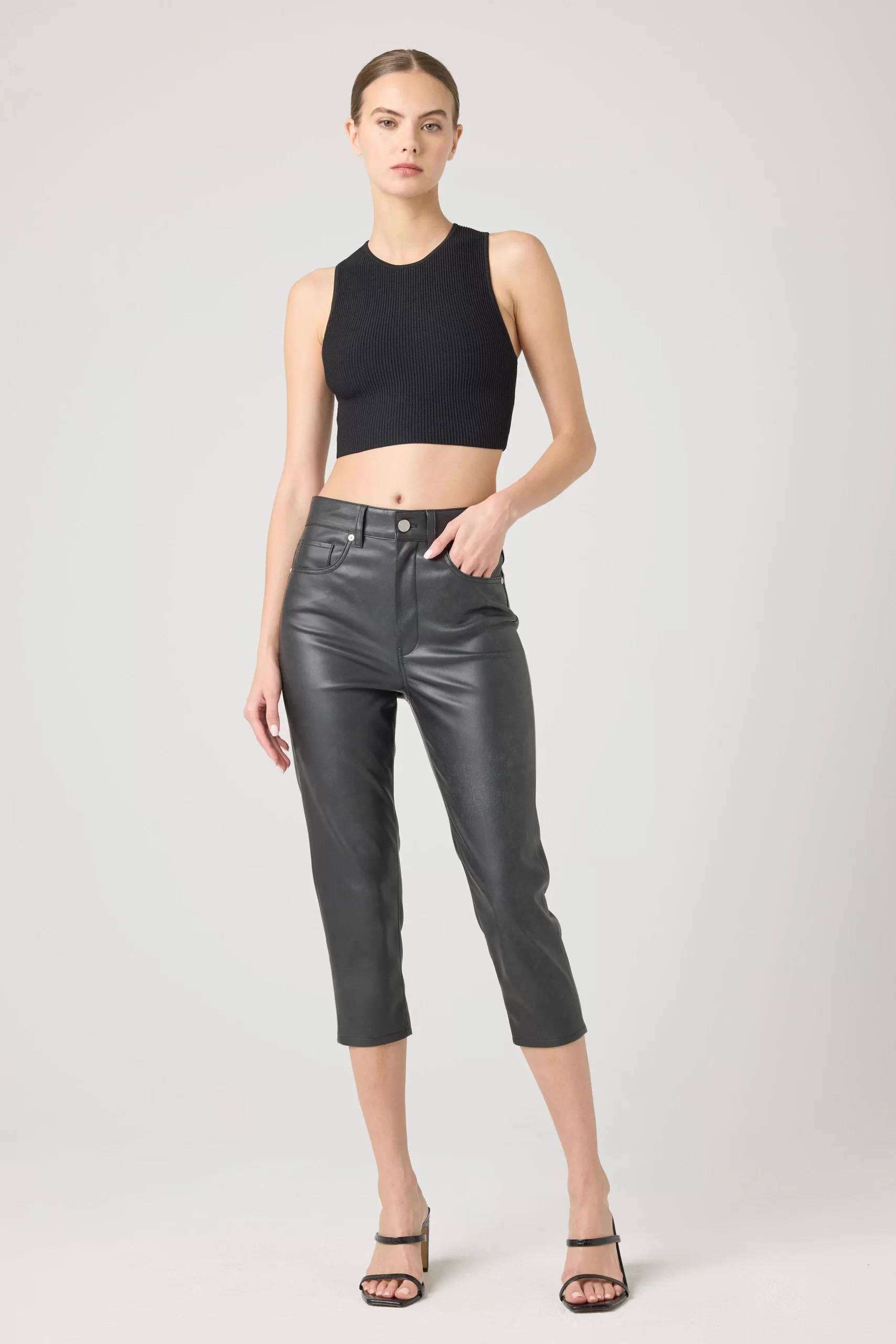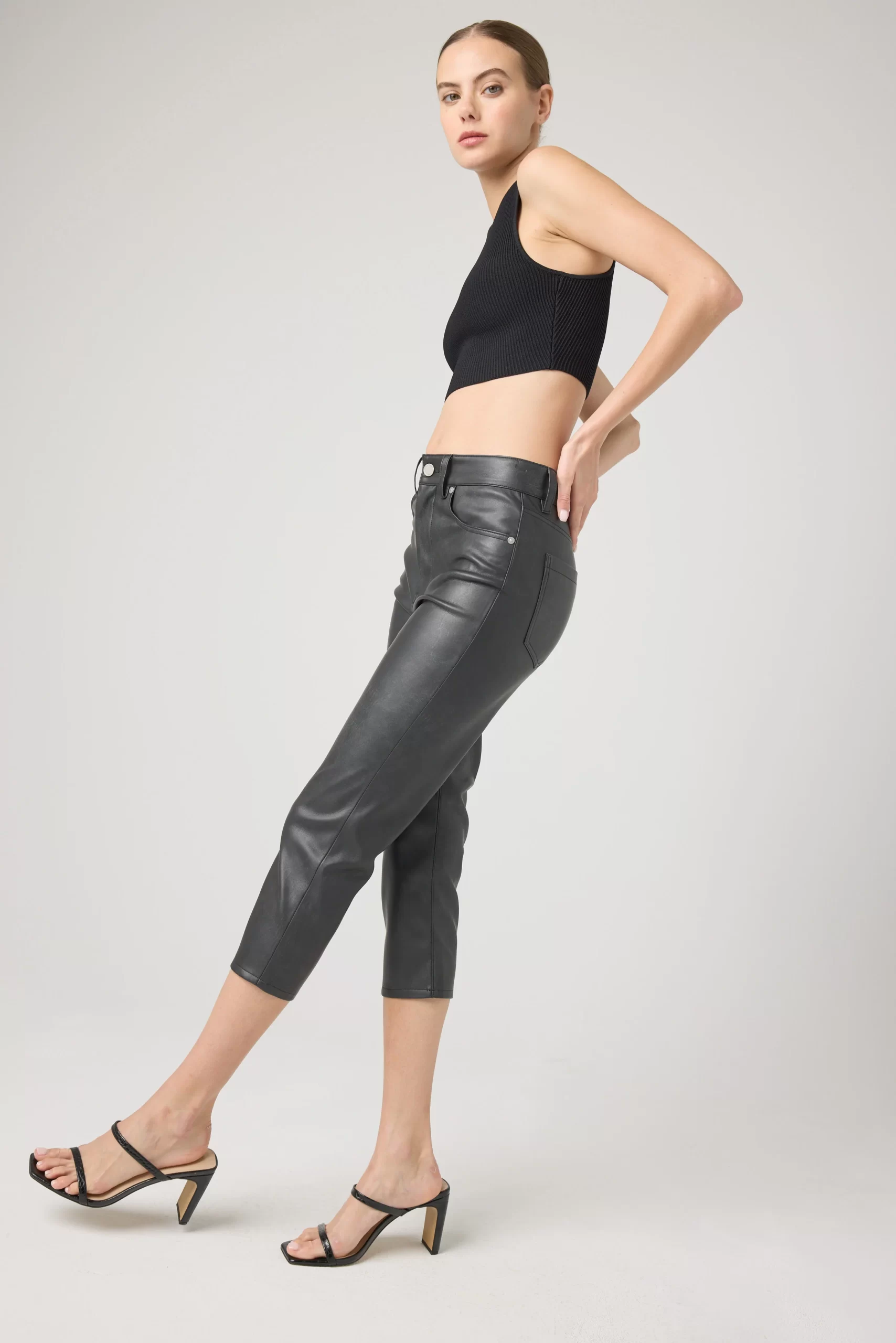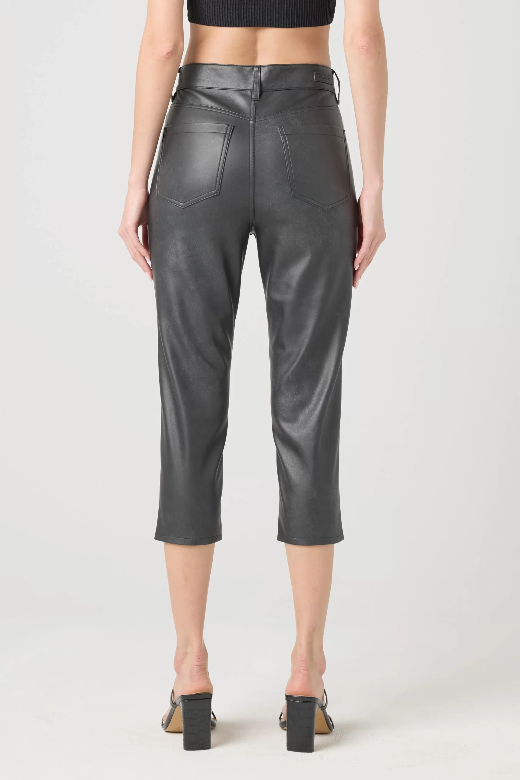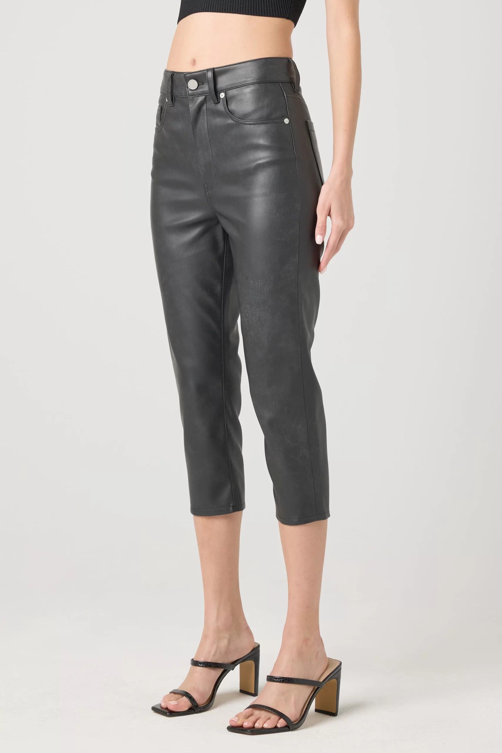 Vegan Leather Capri Pant with Zipper Detail100% PolyurethaneModel Height: 5'9" – Waist: 23.5 – Wearning Size 27