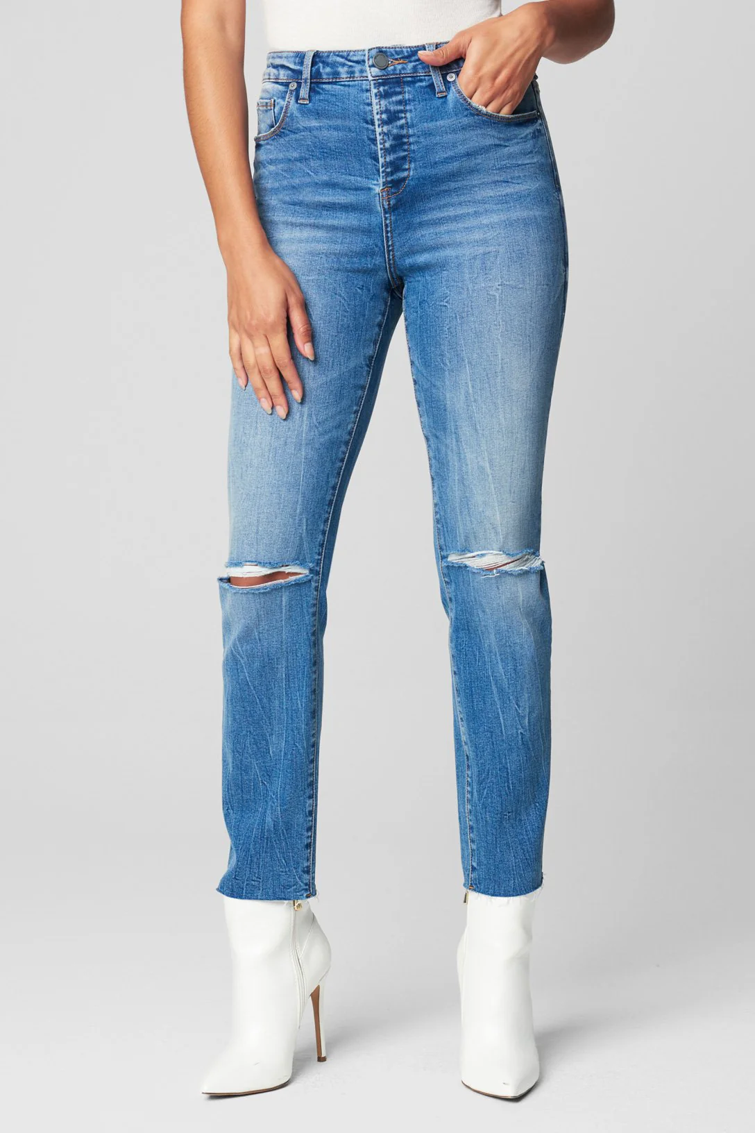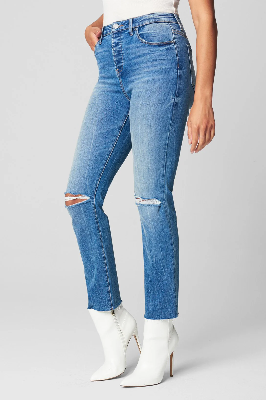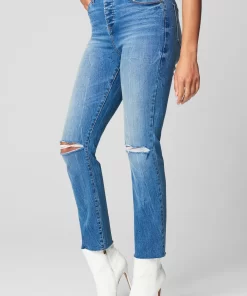 Cropped Straight Leg Jean with Knee Rip98% Organic Cotton, 2% SpandexModel Height: 5'8 – Waist: 24" – Wearing Size 27